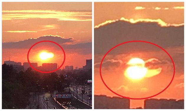 В доказательство своей правоты и несовершенности теории учёных уфологи показывают снимки, сделанные очевидцами в Подмосковье. Так, недавно в Сеть попали фото, на которых была видна Нибиру. Огненный шар появился вечером у Солнца, и был заметен каждому россиянину даже невооружённым взглядом.