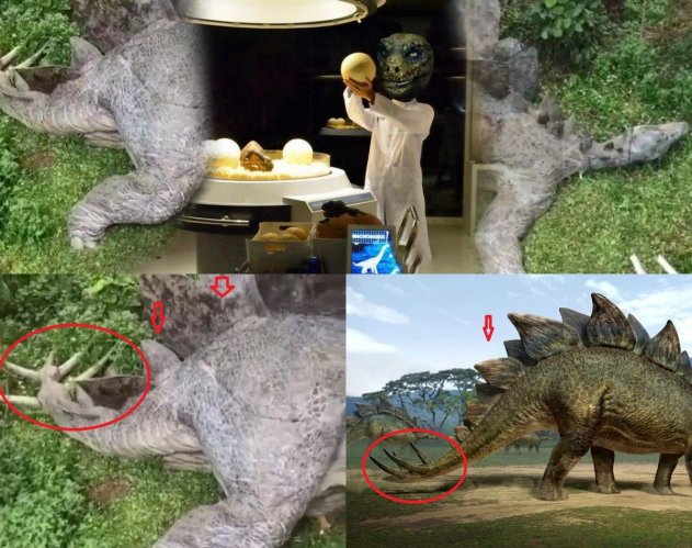 Уфологи, которые искали следы пришельцев на Урале, нашли останки странного существа. Оно максимально похоже на стегозавра из учебников по зоологии. Маленькая голова, большое туловище с пластинами вдоль всего хребта, хвост похож на массивную плеть с пятью острыми крупными шипами в конце, четыре лапы. Тело зверя без шерсти, серого цвета. Пасть закрыта, поэтому зубы рассмотреть не удалось.