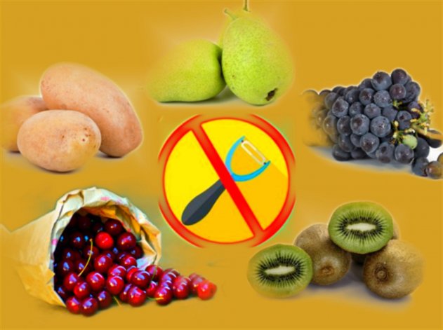 Диетологи указывают на пользу кожи или кожуры фруктов и овощей, которая содержит больше антиоксидантов, клетчатки, витаминов и минералов, чем мякоть. Кожура содержит до 33% больше клетчатки, очищенная часть овоща или фрукта. Учёные подсчитали, что уровень антиоксидантов в кожуре фруктов может быть в 328 раз выше, чем в мясе, но при этом люди сами выбрасывают витамины на помойку. Названы фрукты и овощи, которые нельзя чистить от кожуры. Диетолог говорит, что лучше употреблять ягоды, вишню и виноград, не очищая. Помимо того, что очистить вишни и виноград сложно, однако, людей это не останавливает. Виноградная кожура полезна, так как эта часть винограда содержит больше 50% антиоксидантов, чем во всём фрукте. Повышение антиоксидантов является причиной того, что это один из 10 самых полезных фруктов для тела. Кожа персика, груши и сливы содержит много клетчатки, питательных веществ и антиоксидантов. Исследование даже показало, что удаление кожи персика приводит к снижению количества антиоксидантов на 13-48%. Яблоки рекомендуют вообще не чистить. «Яблочная кожа содержит нерастворимые волокна, витамин С, витамин А и флавоноид кверцетин», - говорит диетолог. В кожуре яблок содержится много питательных веществ и клетчатки, они являются фруктами с высоким содержанием пестицидов. Поэтому кушать кожуру нужно убедившись в экологичности яблок.