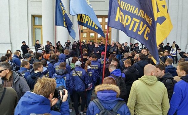 © организация "Национальный корпус" Националисты митингуют у здания министерства иностранных дел Украины с требованием выслать из страны консула Венгрии. 26 сентября 2018А теперь давайте посмотрим, как Украина ведет себя по отношению к венграм, румынам и полякам. Она отменила обучение на их языках тоже и приняла закон об обязательном образовании на украинском языке. В ответ венгры блокируют переговоры Украины с НАТО. Они заявили, что пока Украина не изменит этот закон, никаких переговоров не будет. А ведь согласие всех стран-членов НАТО необходимо, поэтому уже второй год никаких переговоров Украины с НАТО не ведется. Просто Венгрия каждый раз их блокирует. И если венгры передумают, то переговоры заблокирует Польша. А виноваты во всем только украинские политики. Согласно некоторым источникам, со времен Майдана Украина лишилась десяти миллионов граждан. Половина из них уехала в Россию, а другая половина — в Европу. Только в Польше работает миллион украинцев. У нас их не менее 150 тысяч. Не лучшие результаты украинского правительства и украинской демократии.