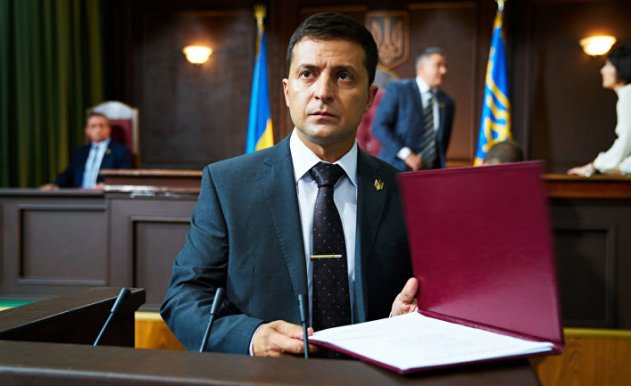 Зеленский исполнил главную роль в сериале, в котором президентом становится обычный учитель. Ночью 31 декабря 2018 года он опубликовал видеосообщение в стиле новогоднего обращения президента в новогоднюю ночь, в котором объявил о своем выдвижении. Медийная стратегия, воплощающая события из телевизионного мира в реальную жизнь, вызвала серьезный резонанс. Политическая партия Зеленского называется также, как и сериал — «Слуга народа».