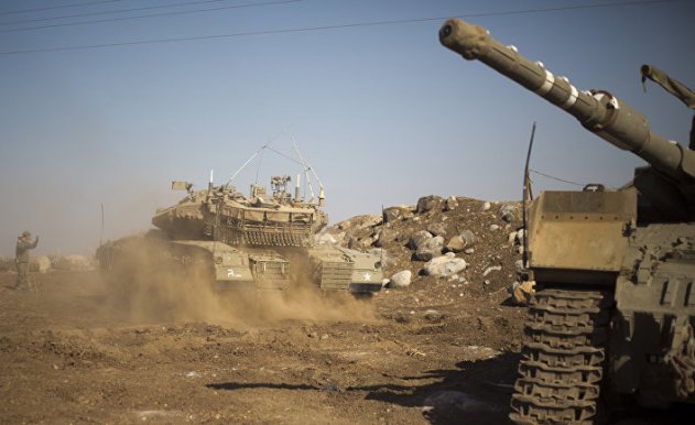 © AP Photo, Ariel SchalitИзраильские солдаты на Голанских высотах
