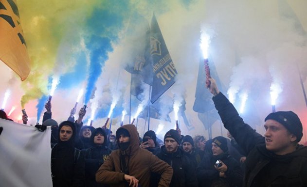 © РИА Новости, Стрингер | Перейти в фотобанкАкции националистов в Киеве— На Украине цензурируется все, что независимо и не лояльно к нынешней государственной политике, которая, по мнению представителей Донецкой Народной Республики и Луганской Народной Республики, нелегитимна и агрессивно борется со всякой критикой. Эту критику называют пророссийской, хотя это неправда. Примером может послужить Руслан Коцаба, чья позиция однозначно проевропейская, и тем не менее он критикует нынешнюю государственную политику.Европа обещает золотые горы, но при этом экономически паразитирует на Украине. Европейцы по самой низкой цене скупают там активы, недвижимость и фирмы, а также пользуются плохими социальными условиями для того, чтобы привлечь к себе эффективную и дешевую украинскую рабочую силу. Кстати, это вредит и Чешской Республике, так как снижаются реальные зарплаты для наших граждан.