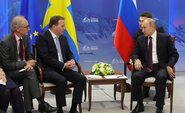 © REUTERS, Sputnik/Mikhail Klimentyev/KremlinВстреча президента России Владимира Путина и премьер-министра Швеции Стефана Лёвена