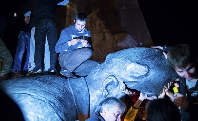 Харьков, апрель. В дни революции весной 2014 года почти по всей Украине стали усердно сносить памятники Ленину. В крупных городах, областных центрах и деревнях за короткое время рухнуло столько памятников советского вождя, что даже появилось особое понятие, производное от слова «снегопад», как будто речь шла о явлении природы. Городской голова Харькова Геннадий Кернес обратился тогда по телевидению с призывом к свергавшим памятники: «Я приглашаю вас на площадь Свободы Харькова, где стоит памятник Владимиру Ильичу Ленину. И если вы только попробуете разрушить его, то я как городской голова заявляю, что сломаю вам обе руки и обе ноги, чтобы вы никогда больше не делали ничего подобного».