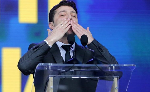 В воскресенье вечером избранный президент начал постепенно примеряться к новой роли. В своем штабе приятно регрессивного декора он принял результаты, шутя с журналистами о том, что его жене стоило бы давно от него уйти. Затем он поблагодарил тех, кто поддержал его, и тех, кто не голосовал за него, а также пообещал «не подвести» украинцев. Наконец, он подчеркнул историческую значимость своей победы: «Я пока еще не президент, и поэтому могу обратиться как гражданин ко всем странам бывшего СССР и сказать им: возможно все». Он заявил о намерении «перезапустить» мирный процесс с Россией в рамках Минских соглашений, которые включают в себя Францию и Германию. «Самое важное — это перемирие», — сказал он. Российский премьер Дмитрий Медведев в свою очередь отметил в понедельник, что после избрания Зеленского у Москвы есть шанс на улучшение отношений с Киевом.