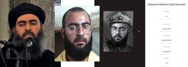 Каким-то образом эти самые эксперты опубликовали снимок Абу Бакра аль-Багдади – лидера запрещённого в Российской Федерации и признанного террористическим «Исламского государства». Главарь ИГ* был прифотошоплен к снимку неизвестного солдата. На сайте он фигурирует под именем солдата Абушаева Михаила Григорьевича. Настоящую фотографию участника ВОВ в Сети найти не удаётся.