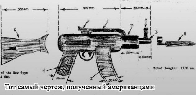 Конечно же, производство такого инновационного оружия, держалось в секрете, причем это удавалось довольно долго. Американцы смогли получить чертеж, затратив невероятные средства, о качестве чертежа вы можете сами посудить ниже.