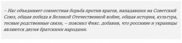 Фикс напомнил всем, что украинцы и россияне всегда были и есть братскими народами, которым нечего делить, и забывать об этом нельзя.