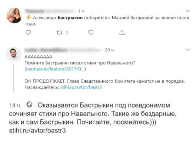 Однако, возвращаясь к теме «Я поэт, зовусь Бастрыкин», хотелось бы отметить, что перед обычными гражданами глава СК, вероятно, сильно опозорился. Как ни крути, но закидывать оппозиционера пошлыми стишками не дает лишней чести силовику. То, что он называет оппозиционера «мышью, Лехой, братом» указывает на совсем другое сословие, которое относится, скорее, к криминальным кругам, чем авторитетным органам внутренних дел.