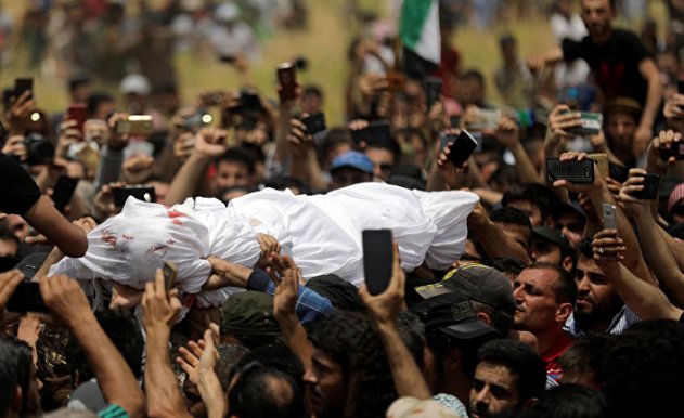 Тысячи сирийцев вышли проститься с «певцом сирийской революции» Абдель Бассетом ас-Сарутом, который был убит в ходе боев в провинции Хама против сил сирийского режима.
