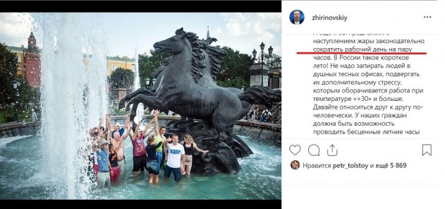 Одним из важнейших лоббистов сокращённой рабочей недели является близкий к народу лидер ЛДПР Владимир Жириновский, который на пару с Медведевым, проталкивая своим политическим весом закон к чтению, может оставить сотни тысяч россиян безработными.