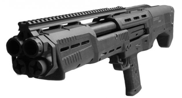 Второй экземпляр более интересен – это DP12: двуствольный помповый дробовик, уникальным свойством которого является то, что после каждой перезарядки вы делаете два, а не один выстрел. Каждый ствол оснащен собственным спусковым механизмом и питанием.