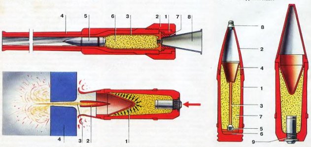 В середине 80-х годов в мире были крайне популярны кумулятивные снаряды, такой снаряд продавливает броню сверхплотной струей газов, образовавшихся от направленного взрыва. Подобные снаряды имеют огромнейшую пробивную силу, а также обладают неплохой универсальностью. Такими боеприпасами можно вести огонь не только по технике, но и по пехоты — ведь по сути это обычный фугас. Именно такие заряды используются в знаменитом РПГ-7.