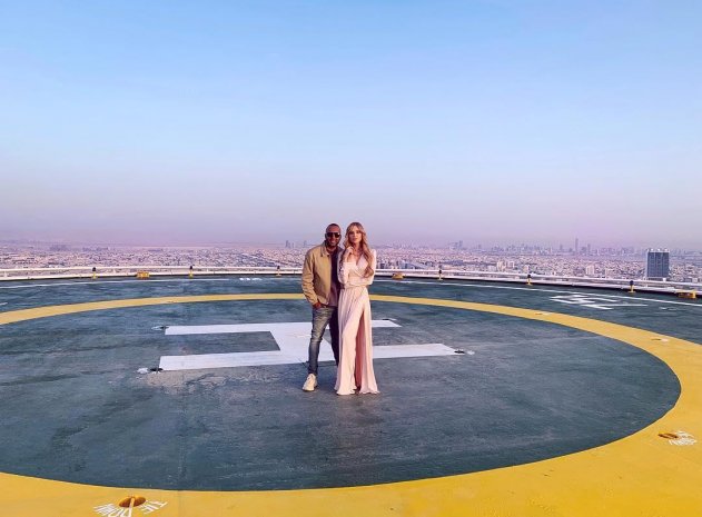 Алена поделилась с поклонниками короткими видео, которые были сняты на вершине одного из самых известных отелей Дубая «Бурж-эль-Араб». Шишкова в нежно-розовом платье и Араш в джинсах и бежевой курточке стоят на вертолетной площадке. Они нежно обнимают друг друга, а вокруг суетится съемочная команда.