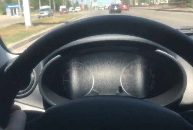 В ролике можно увидеть, что стекло, находящееся над приборами, сильно отсвечивает. Образующиеся блики настолько заметны, что показатели спидометра, тахометра и бортового компьютера практически невозможно разглядеть.