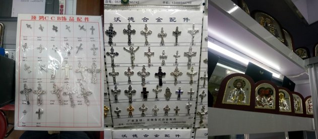 В самом Китае, производство иностранной ритуальной атрибутики уже давно поставлено на огромный поток, центром которого является город Иу в провинции Чжэцзян, где регулярно можно увидеть бородатых покупателей черных православных рясах. При этом продаются в местных магазинах не только иконы и кресты, но и поддельные мощи святых, а также горсти «святой земли из Иерусалима».