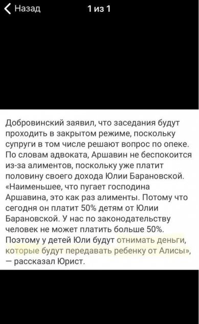 Известно, что по законодательству отцу нельзя отдавать более 50% дохода на алименты, соответственно эти 50% необходимо будет разделить на четверых детей – трое от Юлии Барановской и одна дочь от Алисы. Также, по законодательству не имеет значение сколько у каждой и бывших жен детей. Соответственно, может выйти так, что половину от общей части алиментов Алиса может забрать себе, что не совсем справедливо.