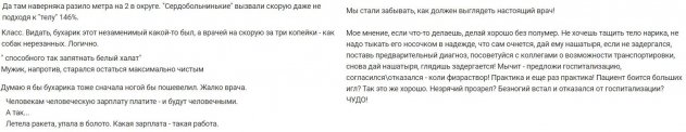 Этот резонансный случай стал показательным для многих россиян, которые, впрочем, решили заступиться за уволенного «лекаря». Они уверены, что врач «скорой» поступил правильно, потоптавшись по голове мужчины, явно находившегося в нетрезвом состоянии. Якобы такие вызовы вообще должны игнорироваться «скорой», поэтому в данном происшествии пациент должен сказать уволенному доктору спасибо и поощрить его за какую-никакую заботу.