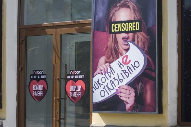 Штраф в размере полумиллиона рублей рисковал получить бар, у которого на двери было написано «войди в меня», а на рекламе девушки сообщали «люблю сверху» и «никогда не отказываю». Не дождавшись штрафа, бар самоликвидировался.