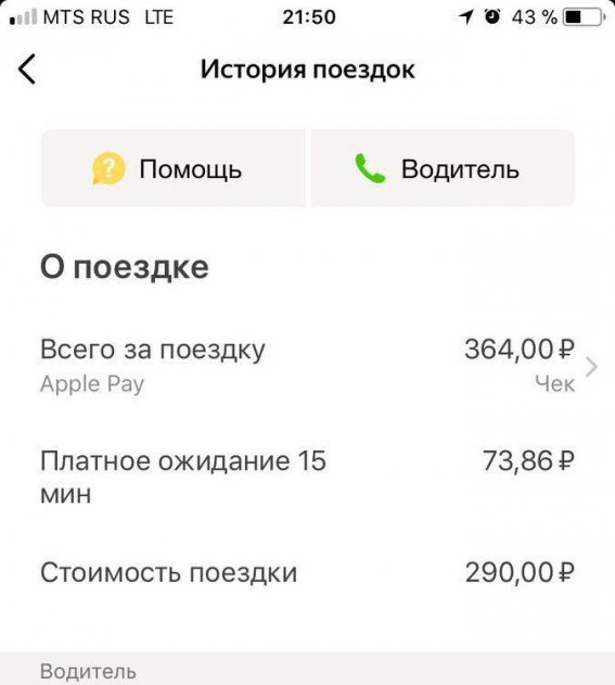 В электронном чеке дополнительная сумма была списана за платное ожидание – целых 15 минут водитель якобы ждал пассажира. Однако, по словам пользователя сети, он сел в машину практически сразу при подаче автомобиля.