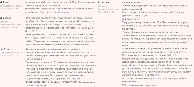Некоторые считают, что «Ростелеком» перешёл от предоставления телекоммуникационных услуг к грубому заработку на россиянах, не желающих сотрудничать. Так, например, из-за наплевательского отношения к жалобам сотрудники могут отключить не ту услугу, игнорировать личные обращения клиентов, вообще не расторгнуть договор и насчитывать задолженность, как «Бог на душу положит».