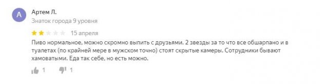 Так, один из посетителей «Жигулей» оставил негативный отзыв о заведении на «Яндексе», поставив ему оценку «2». Клиент отметил неплохое качество пива и еды в ресторане, но персонал назвал «хамовитым». При этом, мужчина пожаловался, что в помещении всё «обшарпано», а в туалетах якобы установлены скрытые камеры, которые следят за справляющими нужду посетителями. Если вспоминать слухи о связях Иосифа Давыдовича с мафией, а также популярность ресторана у «авторитетных» людей, то можно предположить, что у Кобзонов здесь «везде свои глаза».