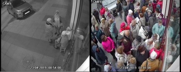 В Санкт-Петербурге, у одного из офиса продаж, камеры наружного наблюдения зафиксировали очередь, которую создавали пенсионеры начиная с часу ночи, за несколько часов до начала самой акции и до открытия отделения. Бабушки ставили стулья и, будто на лавочках у подъезда, ожидали открытия отдела продаж.