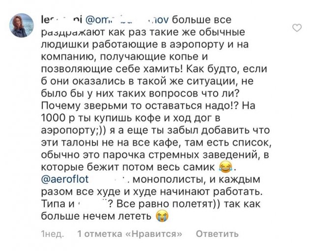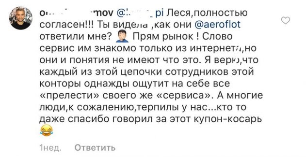 «Кажется, что «Аэрофлот» слышал про сервис только из Интернета», - с негодованием комментируют ситуацию пользователи Inatagram.