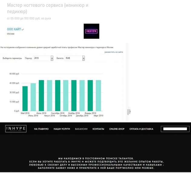 Почему же так могло произойти в столь разрекламированном заведении? Судя по заработным платам, которые обещал салон ранее, а это 85-100 тысяч рублей, они набирают девочек, которые хотели бы много зарабатывать. А средняя зарплата мастеров того же маникюра – около 45-50 тысяч рублей. Разница налицо.