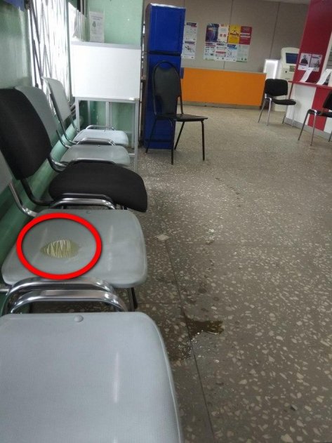 Весьма странная фотография, на которой изображено пустое отделение «Почты России» появилось накануне в сети. На одном из выставленных в ряд стульев можно увидеть желтую лужу, которая, вероятно, и разогнала посетителей, которые подумали, что соответствующая жидкость – результат чьего-то энуреза. Проблема, однако, может обстоять вовсе не в такой досадной случайности. Несмотря на то, что публика в комментариях тут же начала говорить о том, что кто-то справил малую нужду прямо на почте, к правде это, имеет незначительное отношение.