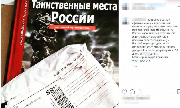 В социальных сетях одна россиянка написала, как долго она ожидала посылку, которую отправила ей ее сестра. Посылка начала свой путь из заграницы и уже через два дня оказалась на территории России. Но почему она так долго не могла добраться до своего получателя Почта России ответ не дала. Сестры уже приняли тот факт, что посылка без вести пропала. Однако, пропажа все-таки нашлась. Забавное совпадение. Девушка сфотографировала полученную посылку на книге под названием: «Таинственные места России». Прокомментировала она это следующим образом: «Почту России надо внести в этот список».