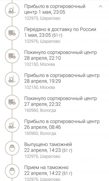 В Twitter один из клиентов «Почты России» опубликовал фотографию маршрута его посылки с подписью: «Пришла посылка в Москву, смоталась в Вологду на недельку, да и вернулась обратно».