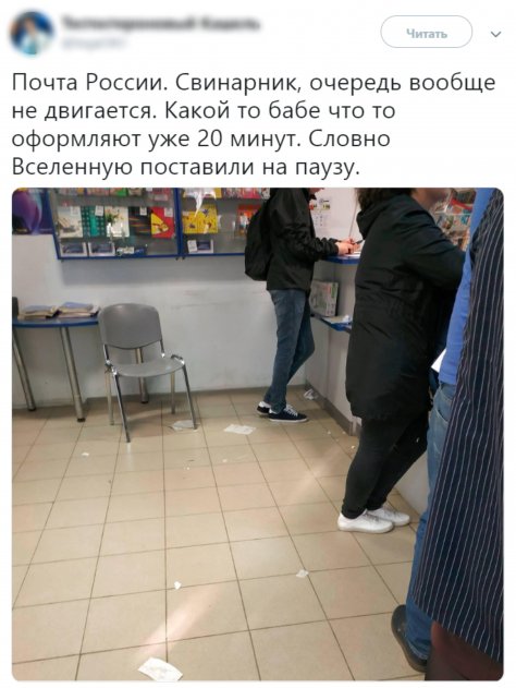Иногда накал страстей достигает такой силы, что клиенты жалуются в сети на происходящее в почтовых отделениях. Один клиент так долго ждал в очереди, что сравнил своё пребывание в почтовом отделении с путешествием в параллельное измерение, где Почта России «поставила Вселенную на паузу».