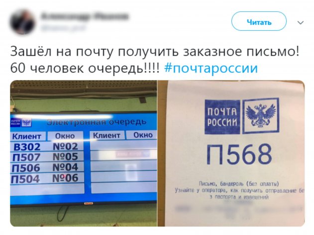 Другой клиент оказался озадачен очередью, которая растянулась на 60 человек. Представители Почты России в социальных сетях в таком случае делают стандартную отписку. Они сообщают телефон горячей линии, чтобы коллеги смогли разобраться в ситуации.