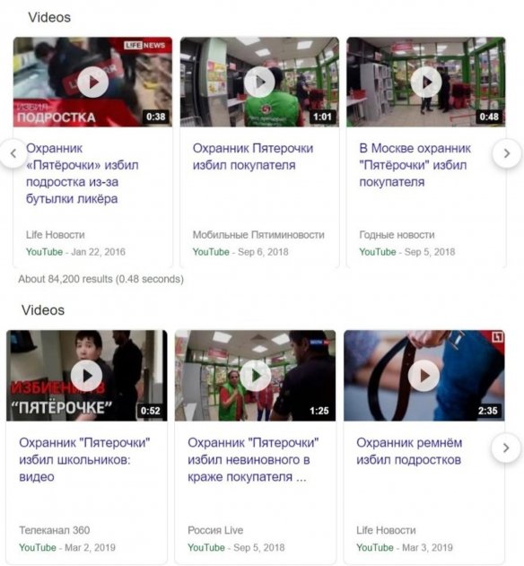 К сожалению, подобные инциденты происходят весьма часто. Стоит просто вбить в Google запрос о том, что охранник «Пятёрочки» избивает клиентов и выпадают десятки видеозаписей, на которых от обычных клиентов такими своеобразными методами добиваются «справедливости». Причем, если верить названиям видеозаписей, то происходит это нередко незаслуженно.