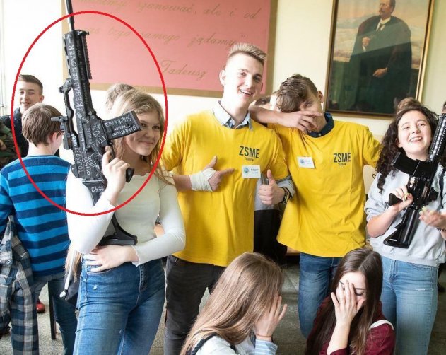 В каждой школе существуют различные секции по интересам, однако не все они несут мирный характер. В сеть попали фотографии польских детей во время военнопатриотических занятий в школе города Тарнова. На снимке ученики позируют с немецкой шутрмовой винтовкой G36, покрытой антиисламскими надписями (одна из которых в частности гласит "Kebab Remover"), что делает её максимально схожей с оружием, использовавшимся стрелком из Новой Зеландии, расстрелявшим прихожан в мечети города Крайстчёрч.