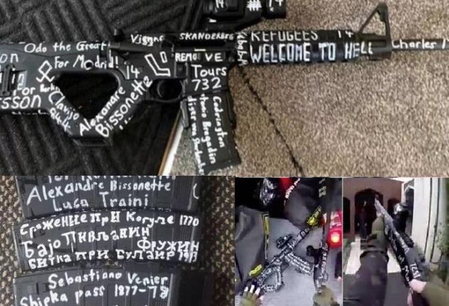 Обстоятельства при которых был сделан снимок на данный момент неизвестны. Ровно как загадкой остается и то, чьей именно инициативой стало принесение в школу оружия, покрытого столь недвусмысленным текстом.