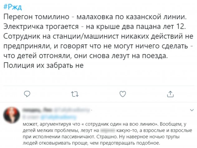 Сотрудники РЖД не предпринимают никаких мер по устранению подобных любителей опасного развлечения. Как минимум, можно обдумать вариант введения крупных штрафов родителям зацеперов, чтобы отпрыскам было неповадно в очередной раз забираться на вагон.