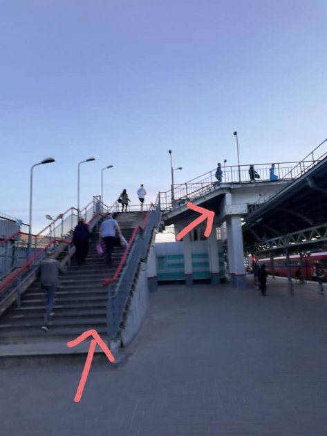 Издевательством над людьми женщина назвала высоченную лестницу без пандусов, через которую, «обливаясь потом», гости Москвы вынуждены добираться с багажом к Белорусскому вокзалу.
