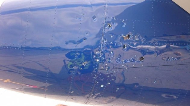 Уже после посадки во время проверки обнаружили шесть пробоин в руле высоты, около пяти пробоин пришлось на панели авиасудна, была задета силовая установка.