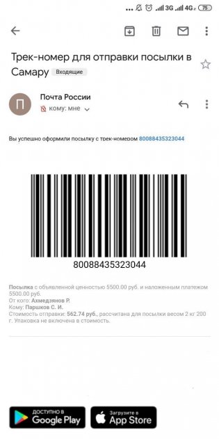 На заданные вопросы и просьбу вернуть деньги, продавец попытался заговорить зубы и прикрывался «Почтой России», якобы это она во всем виновата. После чего, выключил все телефоны и удалился из интернет-сервиса.