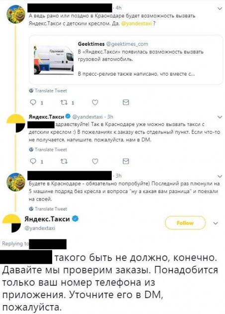 «Яндекс.Такси» убеждены, что в Краснодаре авто с детским креслом уже давно доступно. Сможет ли недовольный клиент доказать свою правоту менеджеру, неизвестно. Радует, что недоброжелательные отклики не остаются незамеченными сотрудниками «Яндекс.Такси» в соцсетях.