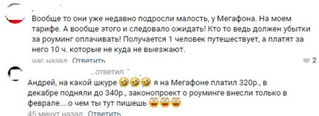 Примечательно, что подорожание услуг связи происходит на фоне общего падения доходов населения, поэтому повышение цен становится особенно заметным. Клиенты «МегаФона» раскритиковали последствия нововведения и уверяют, что стоимость услуг начала расти ещё до принятия законопроекта об отмене роуминга. Объявленные средние по стране цифры подорожания тарифов – около 3%, не сходятся с конкретными данными пользователей, у которых показатели выше.