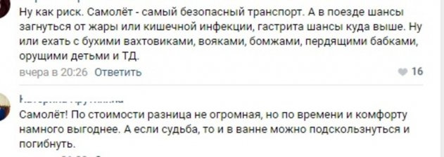 Однако, многих россиян пугает перспектива в поездке «на моря» перенести массу страданий из-за неработающего или отсутствующего кондиционера вагоне поезда. Соцсети полны обсуждений на тему в духе: «Может лучше самолётом? Второй такой поездки, как в прошлом году, я не переживу».