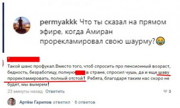 Оказалось, что причина сего негодования со словесным недержанием крылась в рекламе шаурмы от Амирана Сардарова, основателя канала «Дневник Хача». Пользователи из России также не разделили настрой блогера во время общения с Владимиром Путиным, поддержав спортсмена в реакции. Россияне считают, что блогер упустил возможность помочь гражданам, забыв об их насущных проблемах.