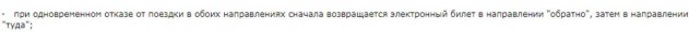 Достаточно взглянуть на опубликованные в Сети положения и убедиться, что вначале пассажир осуществляет возврат электронного билета в направлении «обратно», затем – «туда». Это должно происходить вне зависимости, где приобретались проездные документы – на сайте РЖД или на стороннем ресурсе.