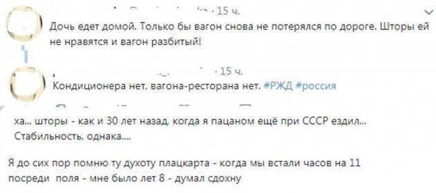 Приблизительно в таком духе рассказали о своей поездке пассажиры одного из маршрутов РЖД, наверняка не являющегося уникальным. На такие мелочи, как отсутствие вагона-ресторана уже никто не обращает внимания, ведь, пользуясь многолетним опытом, россияне всегда могут захватить в дорогу приготовленную дома снедь. В любом случае, граждане остались благодарны РЖД за небольшое путешествие во времени.
