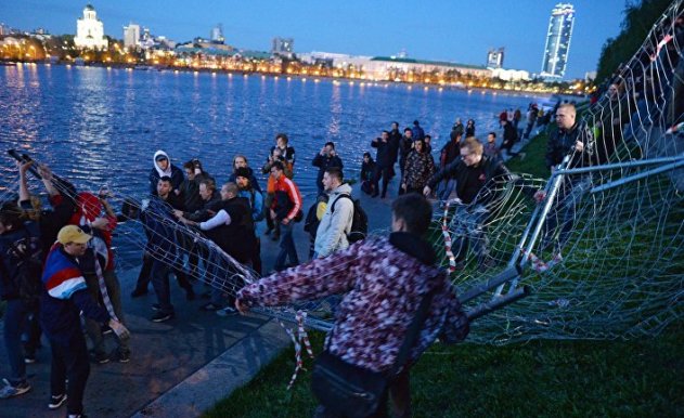 Сотни людей вышли на митинги протеста против этой стройки, которую финансируют два местных олигарха с благословения областных властей. Демонстранты порвали сетку забора и утопили ее в пруду, который находится в историческом центре Екатеринбурга. Полиция в ходе столкновений с протестующими задержала десятки человек.