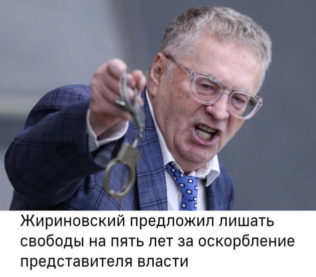 Естественно, рациональная составляющая в словах Жириновского имеется, однако Владимиру Вольфовичу следует понимать, что закон об оскорблении власти, утвержденный недавно, может быть применен и по отношению к нему. Учитывая то, что скандальный политик призывал сажать на пять лет за оскорбление власти, он должен понимать, что сам может пострадать от этого.